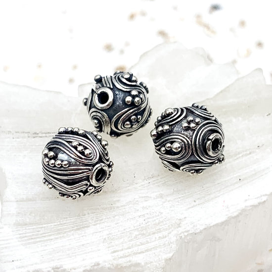 Sterling Silver Round Focal Bead with Fine Wire Swirls