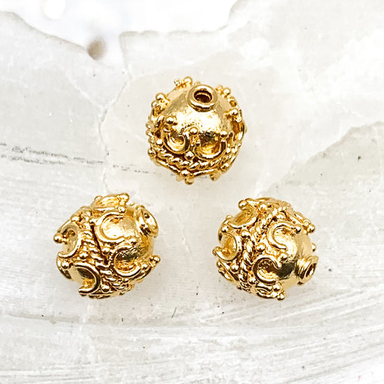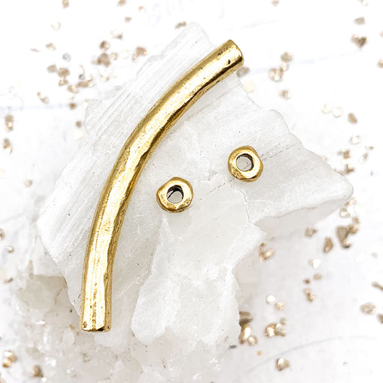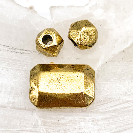 Antique Gold Tube and Bead Pair Set - 3pcs