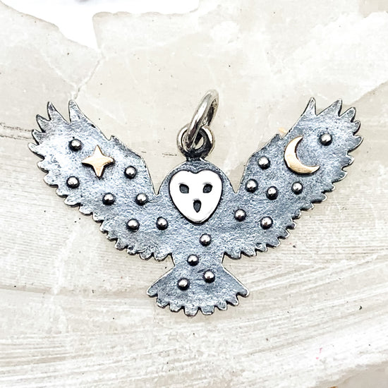 Sterling Silver Owl Charm with Bronze Star and Moon