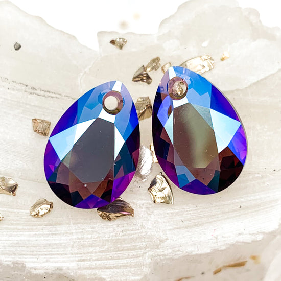 16mm Amethyst Shimmer Premium Austrian Crystal Pear Pendant Pair