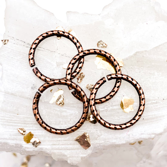 12mm Textured Antique Copper Jump Rings - 4 Pcs
