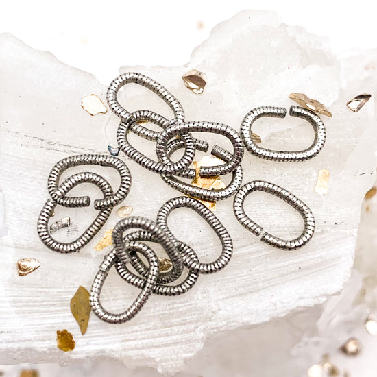 Antique Silver 9mm Textured Oval Jump Rings - 12pcs