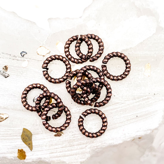 Antique Copper 6mm Textured Jump Rings - 12pcs