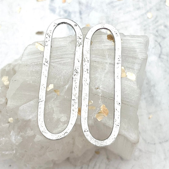 Sterling Silver Large Hammered Elongated Oval Hoop Pair