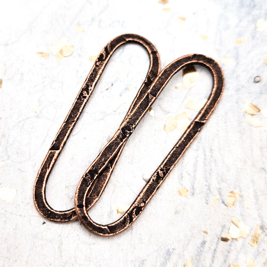 Antique Copper Large Hammered Elongated Oval Hoop Pair