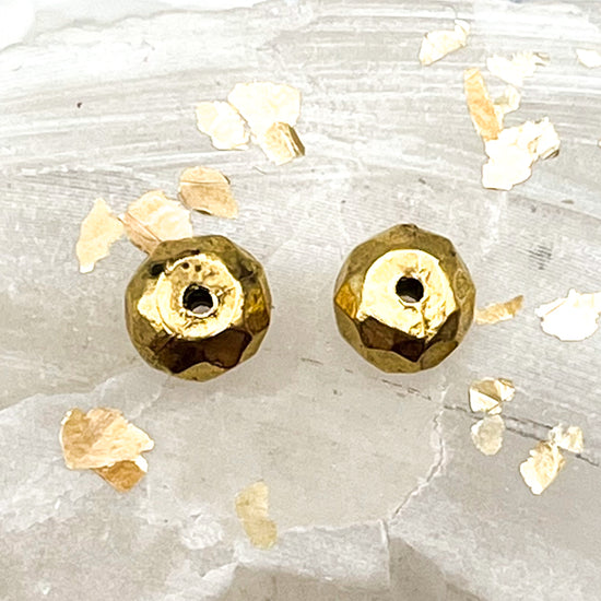 Antique Gold Faceted Metal Bead Pair