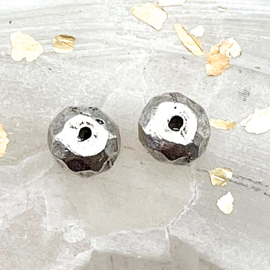 Antique Silver Faceted Metal Bead Pair