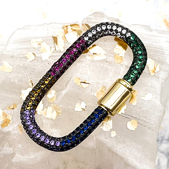 16K Gold Plated Oval Rainbow Rhinestone Screw Carabiner Clasp