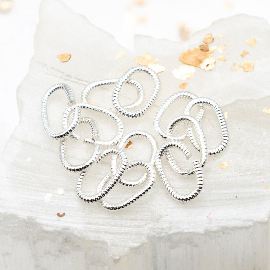 Sterling Silver Plated 9mm Textured Oval Jump Rings - 12pcs