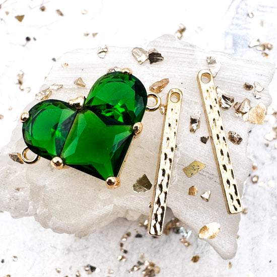 Golden Emerald Faceted Heart Link