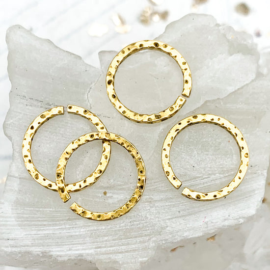 12mm Square Wire Hammered Antique Gold Jump Rings - 4 Pcs