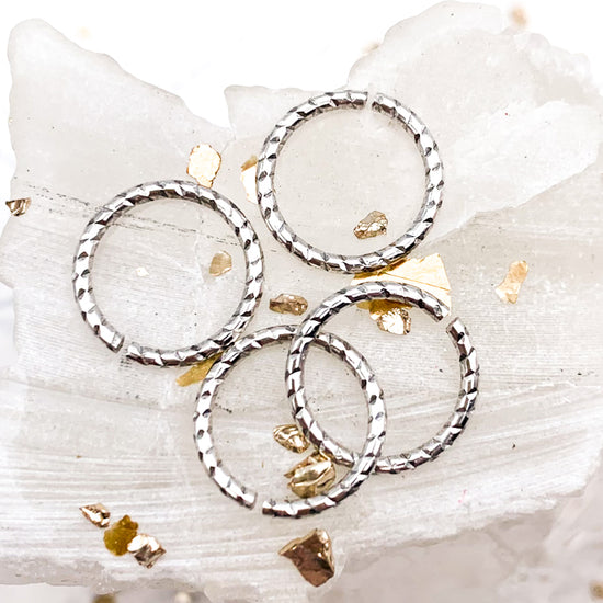 12mm Textured Antique Silver Jump Rings - 4 Pcs