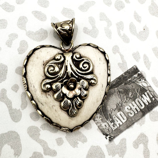 Pink Roses on White Vintage Lampwork Glass Bead - Paris Find