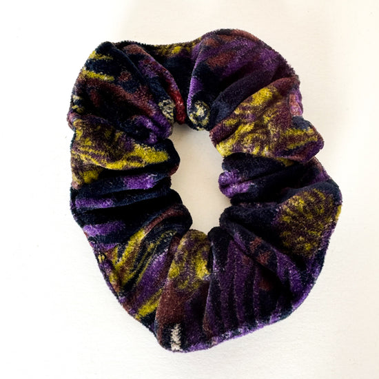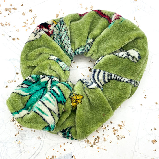 Dark Green & Tan Maroon Flowers Garden Scrunchie