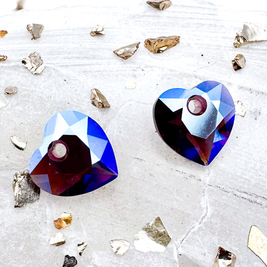 8mm Crystal Amethyst Shimmer Premium Austrian Crystal Heart Cut Pendant Pair
