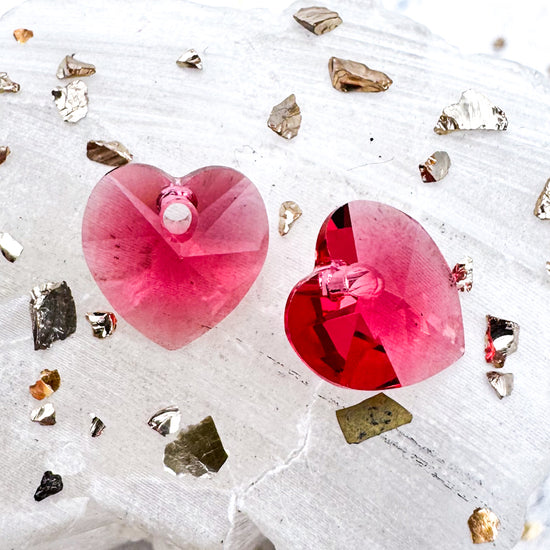 3x10mm Crystal Indian Pink Premium Austrian Crystal Heart Cut Pendant Pair