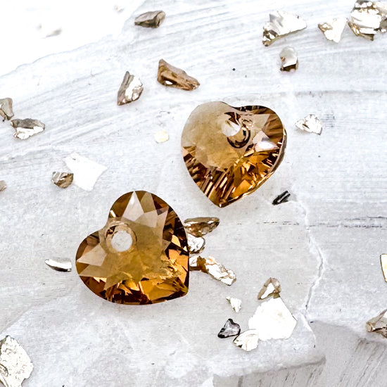 8mm Crystal Light Colorado Topaz Premium Austrian Crystal Heart Cut Pendant Pair