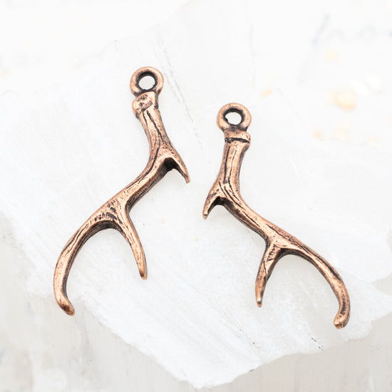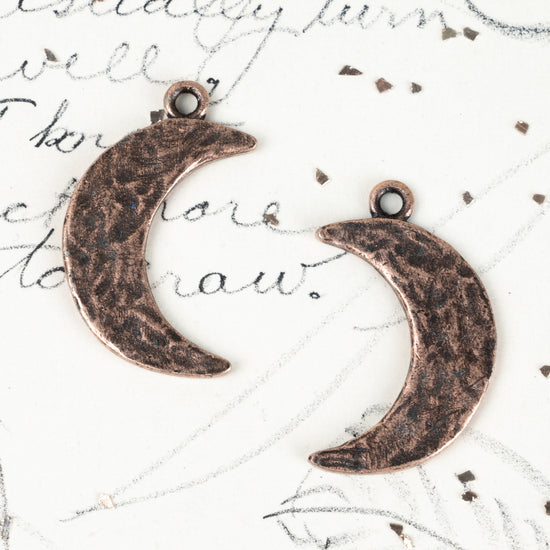 29mm Antique Copper Hammered Crescent Moon Charm Pair