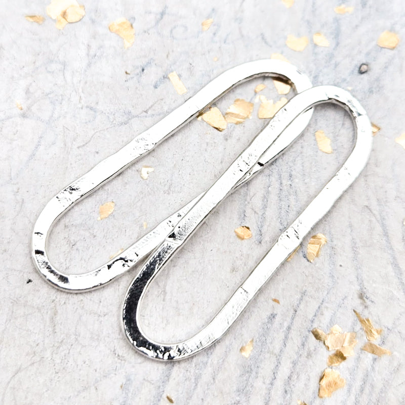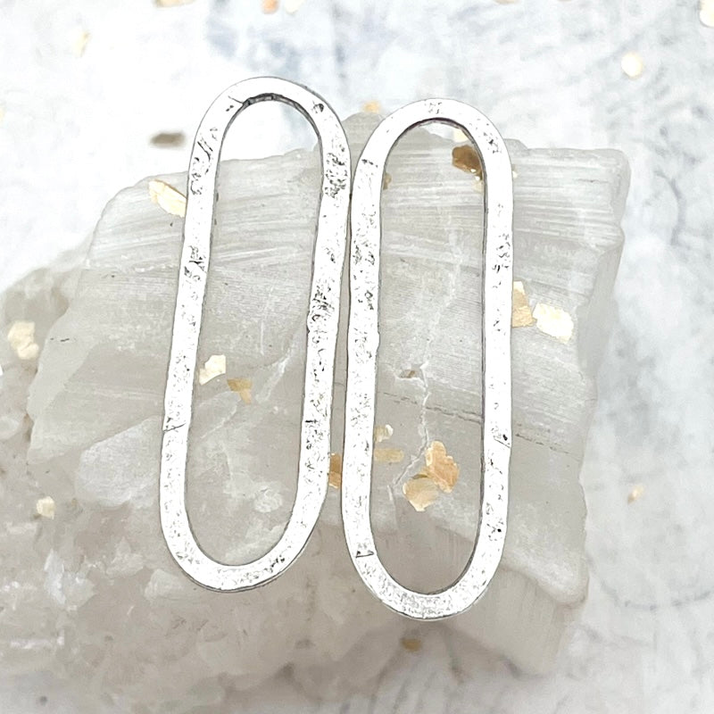 Sterling Silver Large Hammered Elongated Oval Hoop Pair