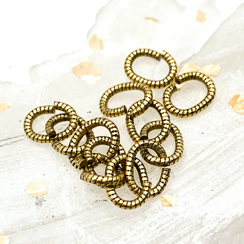 6mm Textured Antique Gold Oval Jump Ring Set - 12pcs