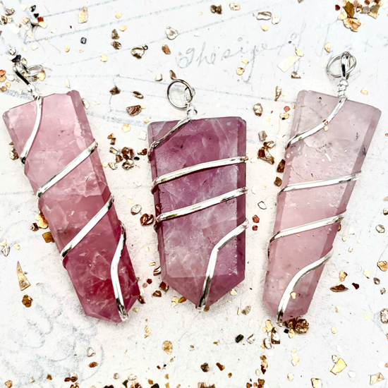 Flat Rose Quartz with Wire Wrap Pendant - Tucson Find