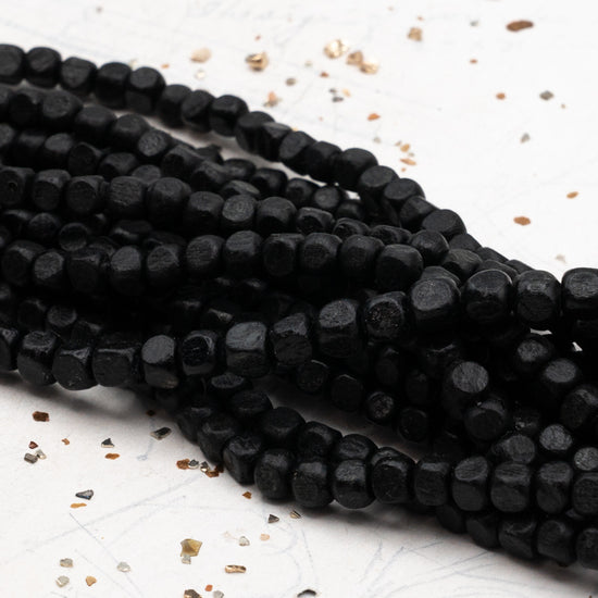 Black Large Wooden Cube Bead Strand