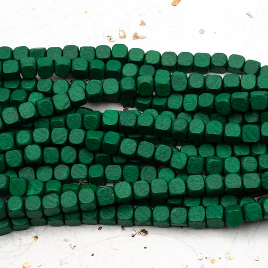 Forest Green Large Wooden Cube Bead Strand