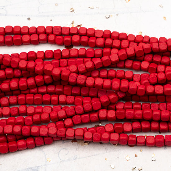 Small Bright Red Wooden Cube Bead Strand