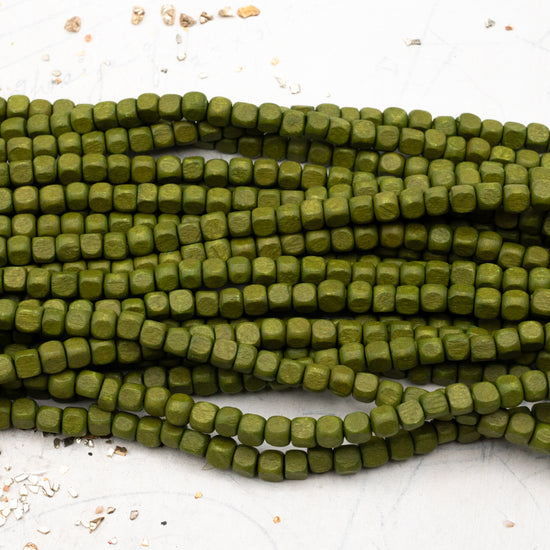 Small Olive Wooden Cube Bead Strand