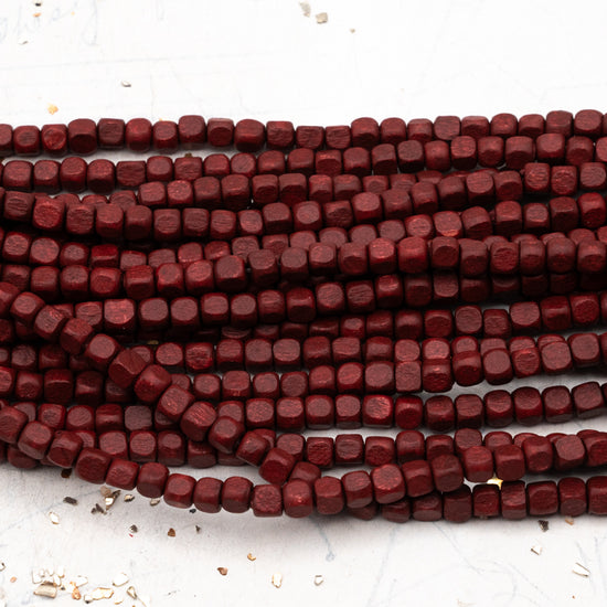 Small Bordeaux Wooden Cube Bead Strand