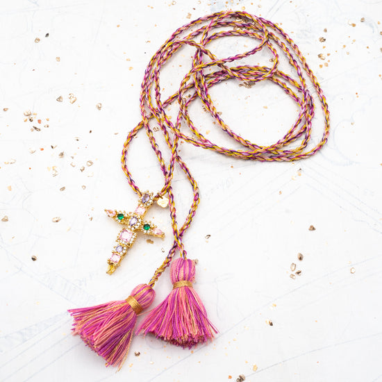 Pink Sparkle Cross Pendant Necklace