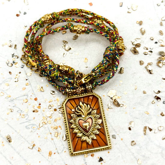 Amber Orange Heart Pendant Necklace- Paris Find