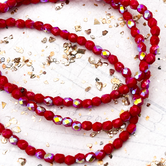 4mm Ruby Red with AB Finish Faceted Round Fire-Polished Bead Strand