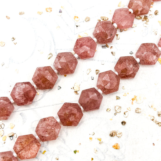 Strawberry Quartz Calibrated Hexagon Gemstone Bead Strand