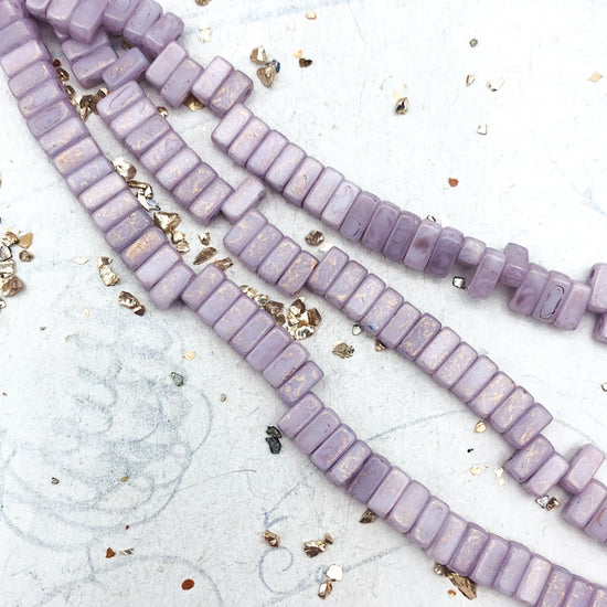 3x6mm Lovely Lavender 2-Hole Brick Bead Strand