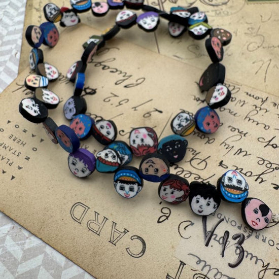 German Polymer Face Bead Lampwork Strand - Sleepy Hollow Road Trip Finds