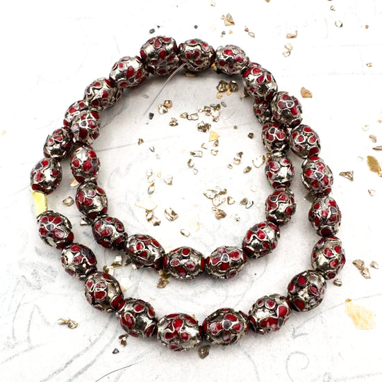 Red Cloisonne Flower Bead Strand - Tucson Find