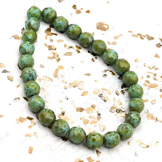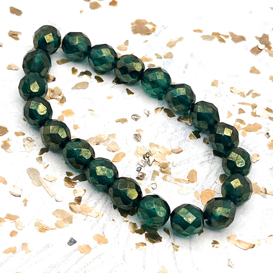 8mm Faceted Round Firepolished Bead Emerald with Gold Luster Strand