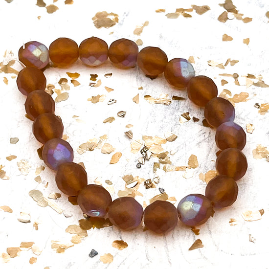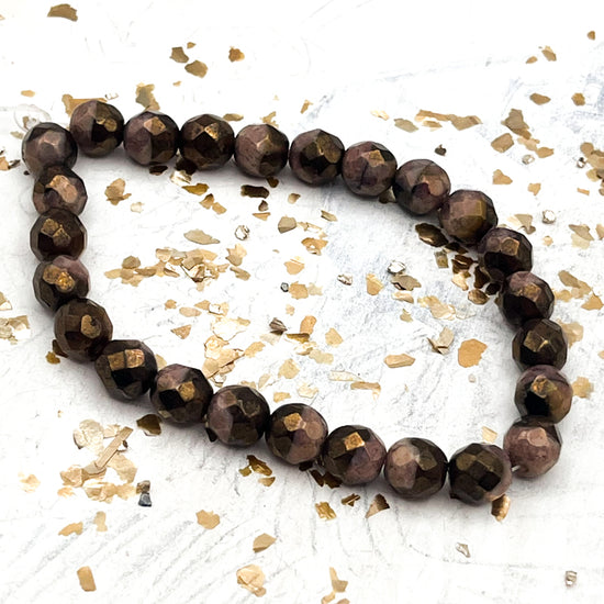 8mm Faceted Round Firepolished Bead Dusty Rose and Root Beer with Bronze Finish Strand