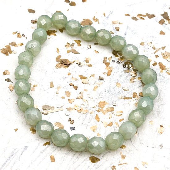 8mm Faceted Round Firepolished Bead Pale Sage with ...