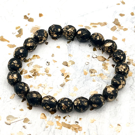 8mm Faceted Round Firepolished Bead Matte Black with Gold Finish Strand