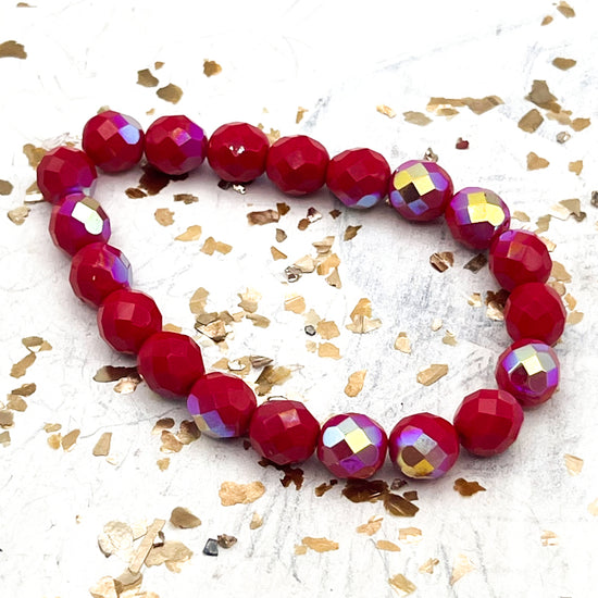 8mm Faceted Round Firepolished Bead Red with Rainbow AB Finish Strand