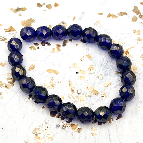 8mm Faceted Round Firepolished Bead Sapphire with Gold Luster