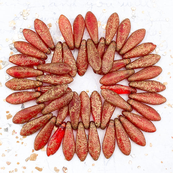 5x16mm Scarlet Red with Etched and Gold Wash Finish Dagger Bead Strand