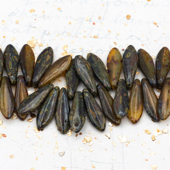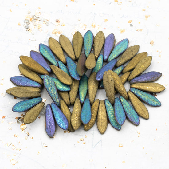 5x16mm Gold and AB with an Etched Finish Dagger Bead Strand