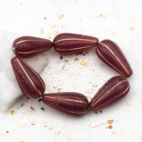 22mm Rosewood with Copper Wash Melon Drop Czech Beads