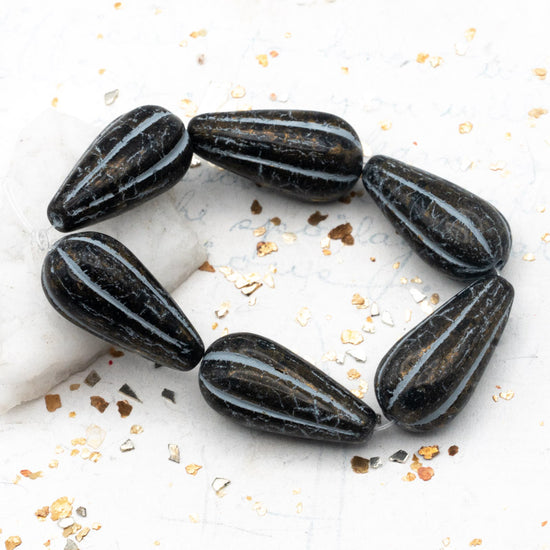 22mm Black with a Gold Finish and a Grey Wash Melon Drop Czech Beads