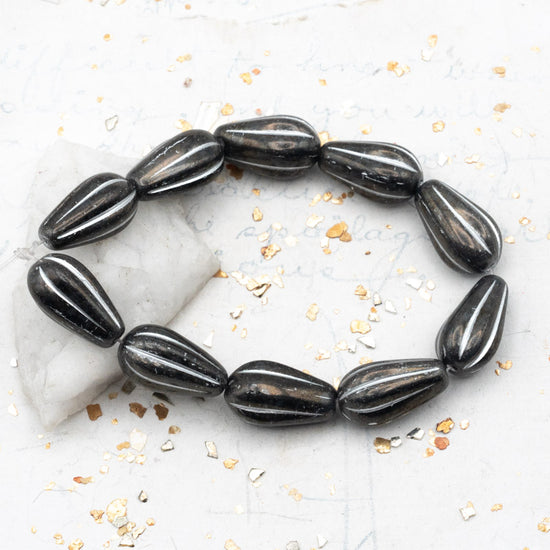 15mm Black with a Light Bronze Finish and Silver Wash Melon Drop Czech Beads