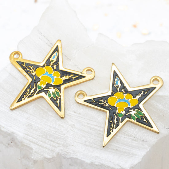 Vintage Enamel Orange Gerbera Daisy Star Link Pair