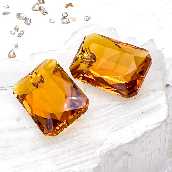 Pre-Order 16mm Austrian Crystal Light Colorado Topaz Emerald Cut Pendant - 2pcs
